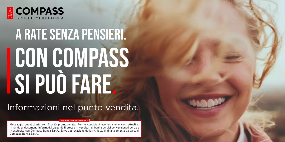 I supporti invitano la clientela, in modo semplice e immediato, a concretizzare serenamente gli acquisti di prodotti e servizi proposti con un finanziamento Compass.